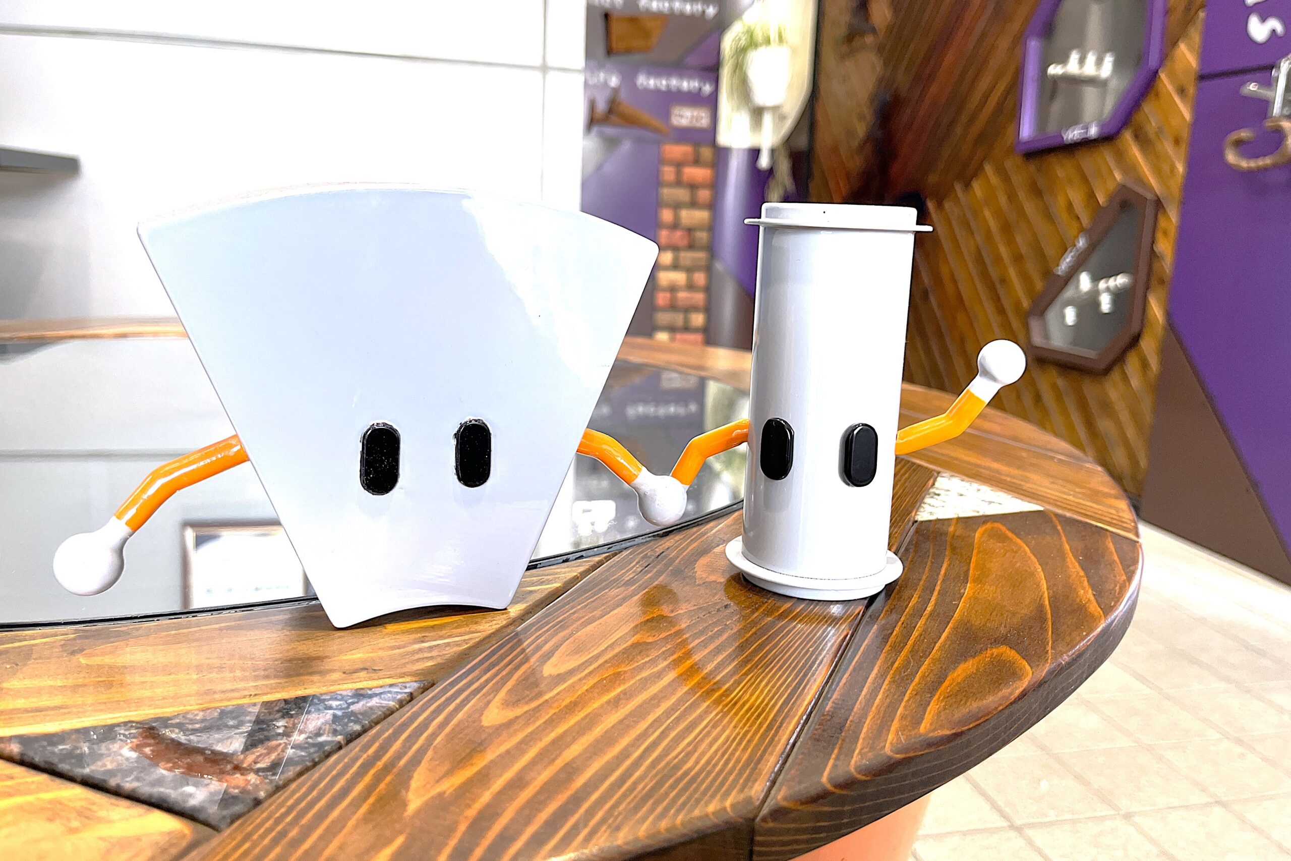 てつまどのマスコット「パイぷん」と「ダクとん」の塗装バージョンができました!