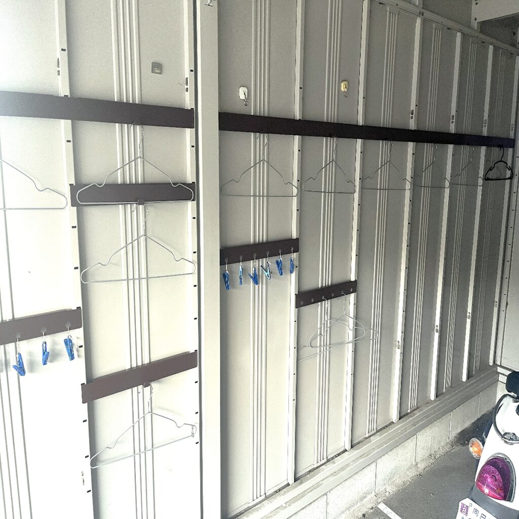 壁一面が雨具をサッと干せるスペースに早変わりし、快適な空間になりました✨