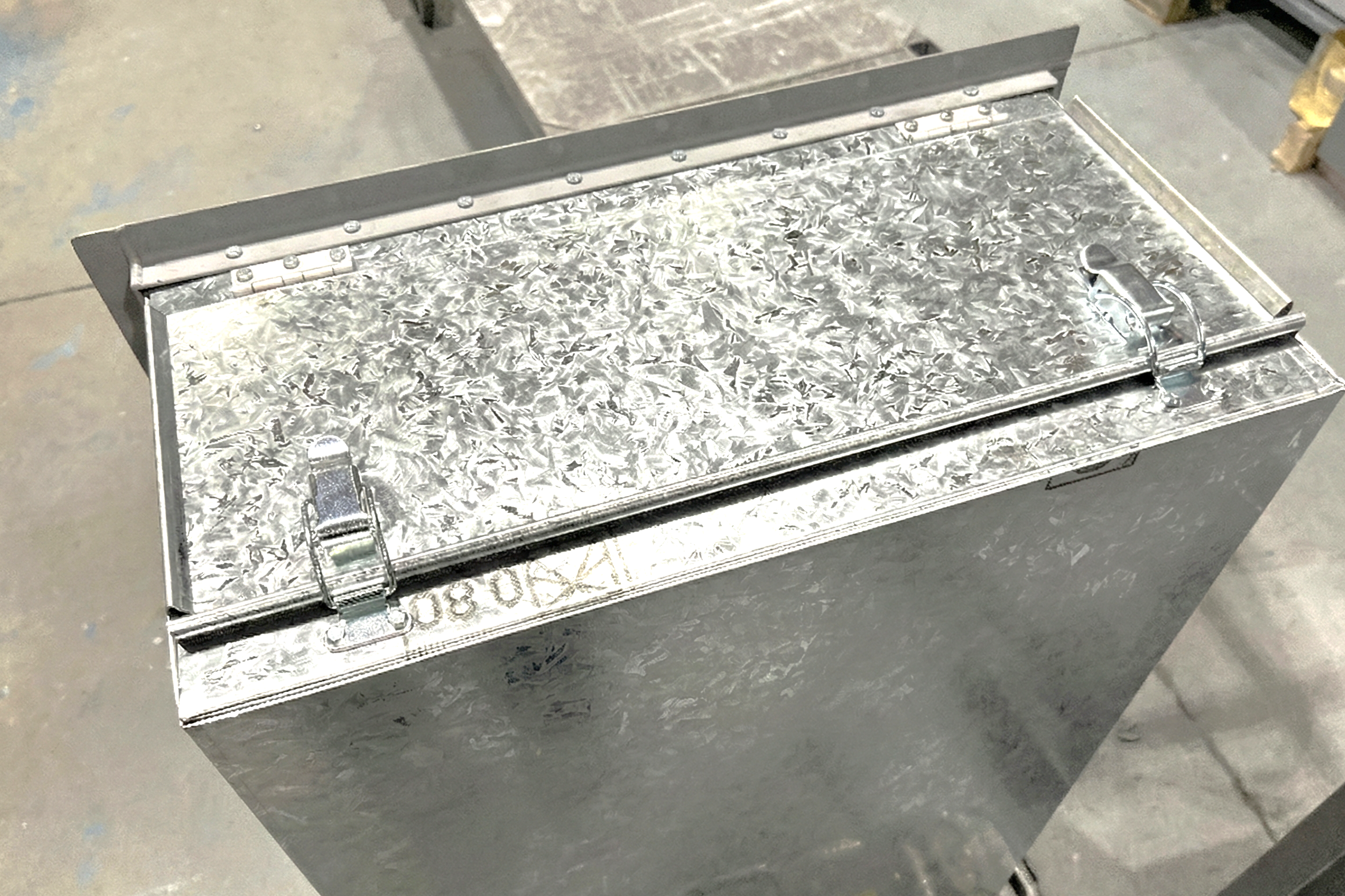 角ダクトの上面に開閉できる蓋を設け、しっかり固定できるように留め具も付けています。