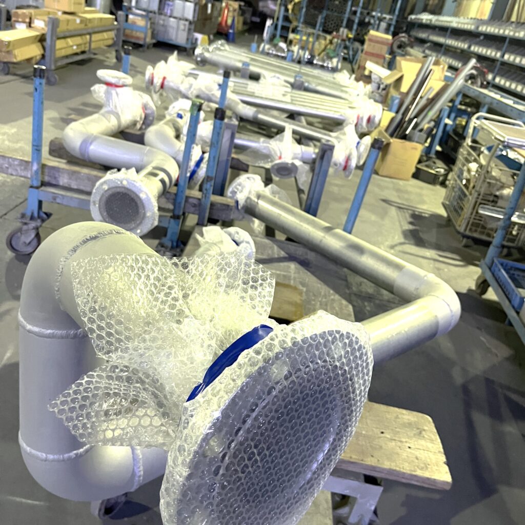 フランジやバルブの当たり面にキズが入ると、現地での漏れの原因になるためです。