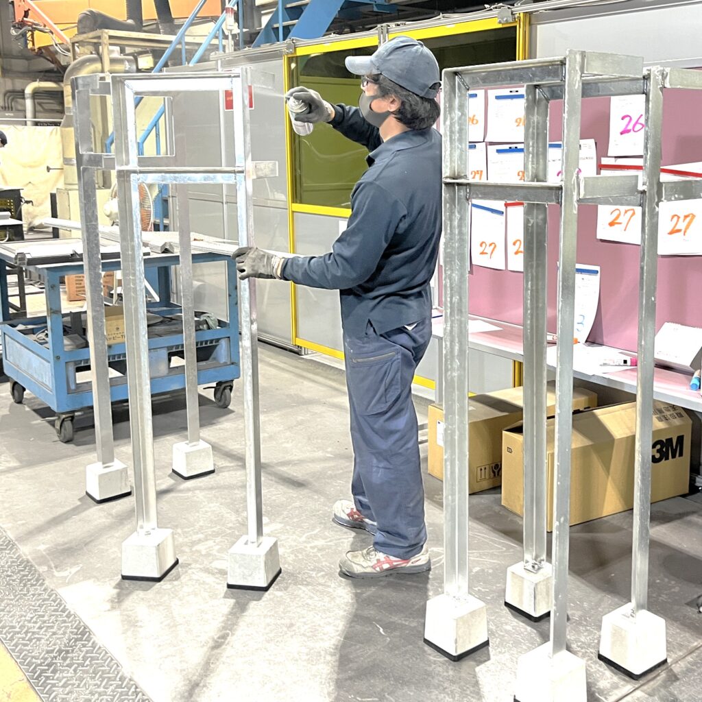 同時進行で、配管を載せるための架台(フレーム)も工場で製作しています。